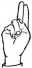 На ћирилици написано БУДИМИР КОВАЧЕВИЋ састоји се из 16 слова [?]. Исписано ћириличном једноручном азбуком за глувонеме: